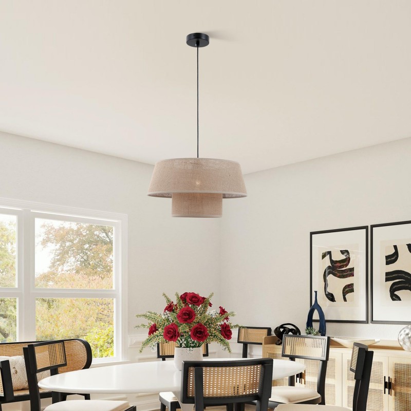 Neseniai Kinijos gamintojo „Strong Lighting“ pristatyta dviejų pakopų kanapių virtuvės pakabinama lempa suteikia senoviškumo ir jaukių atmosferų interjero dekoravimui. Lankstus juodas 1M ilgio laidas leidžia laisvai reguliuoti lempos aukštį ir naudoti kaip pakabinamą šviestuvą arba pusiau įleidžiamas šviestuvas. Galite pakabinti virš valgomojo stalo, pastatyti svetainės kampe ar net pakabinti miegamajame. Tai ne funkcionalus gaminys, o jūsų namų puošybos dalis. Dviejų lygių kanapinis virtuvės pakabinamas šviestuvas yra dviejų skirtingų dydžių, dar vienas mažesnis – 300 mm skersmens.